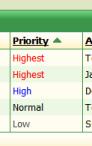 Images below show the appearance and contents of Priority column after clicking column caption for the first time, and then after following click.