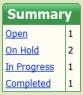 The last from the sections displayed above Issues List is Summary section. It displays number of issues matching current search criteria with specific status set. Status names are listed (only ones that exist in the current Issues List) and number of issues with given status is shown beside.
